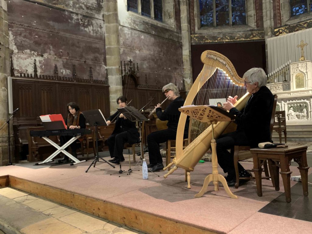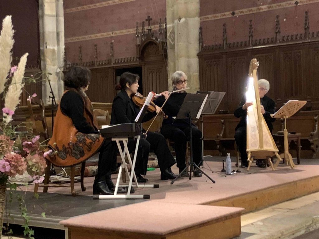 Très beau concert d’Est en Ouest le dimanche 9 novembre 2025 à 17h à l’église de Limours avec Olena et Uliana Bondarets ( Piano et violon ), Janine Hingston ( Flûte traversière ), Yvon Le Quellec (Harpe) avec des chants de l’Ukraine aux terres celtes en traversant l’Europe musicale dans un mix classique-folk.
