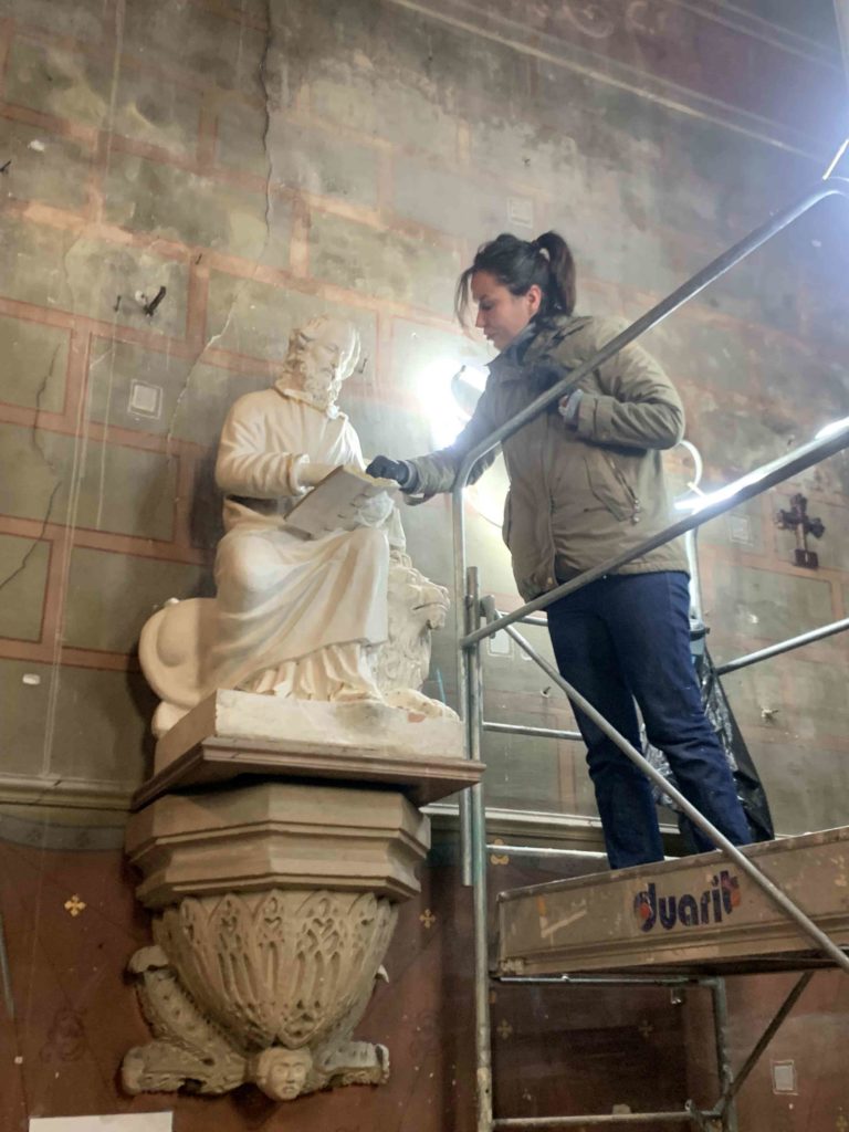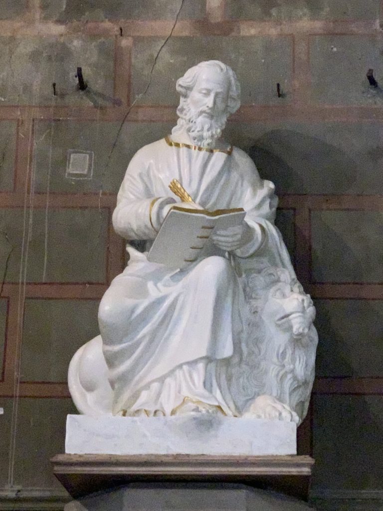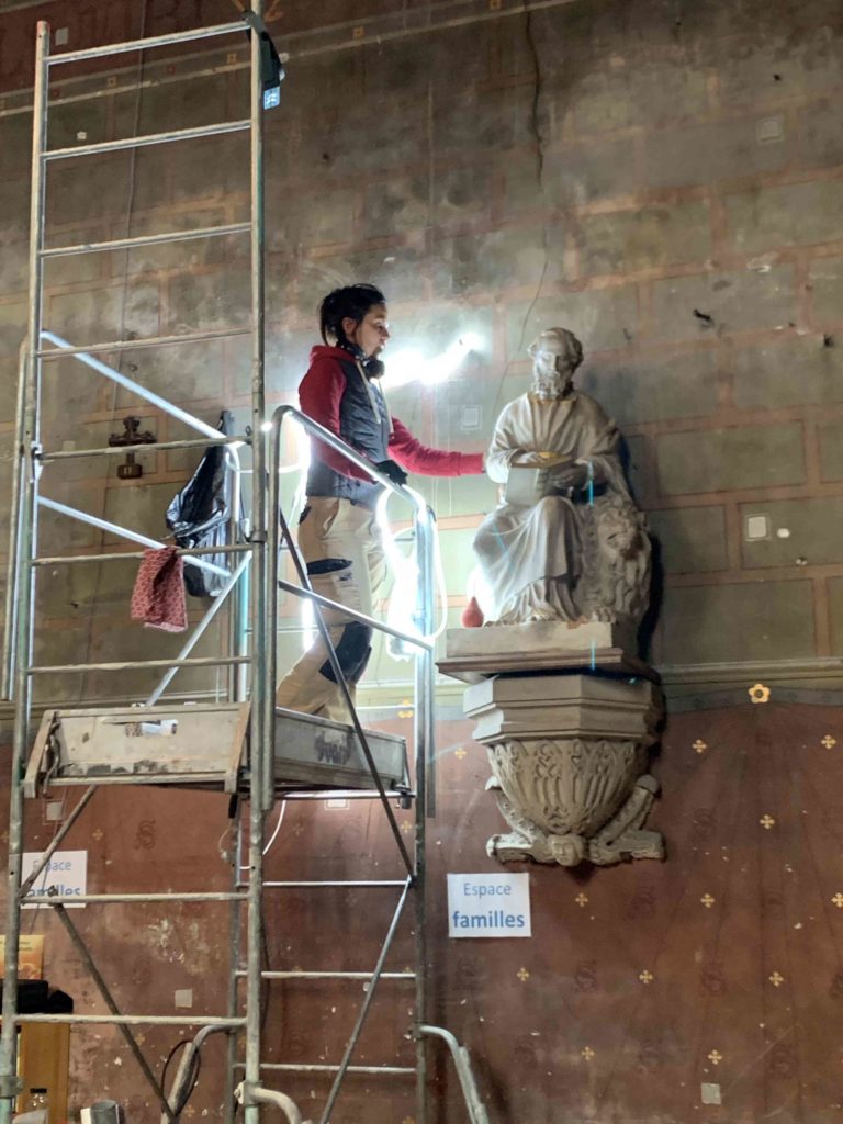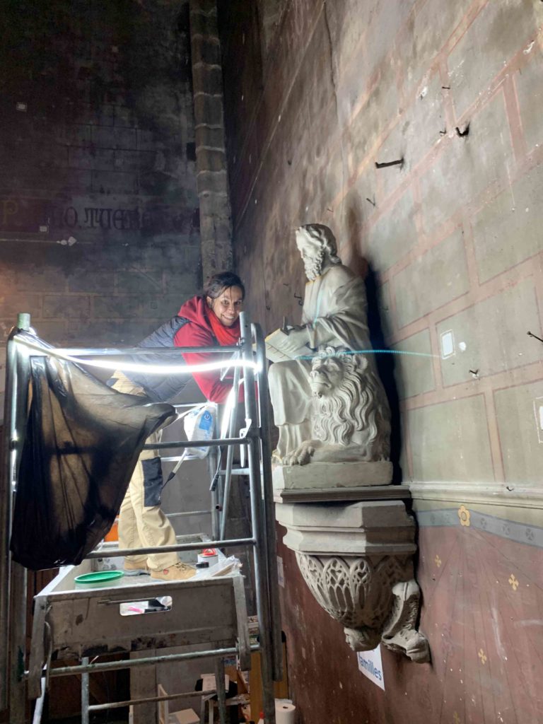 Restauration en cours de la statue de St Marc par Mme Cécile De Oliveira : 1 – 12 Déc 2025
