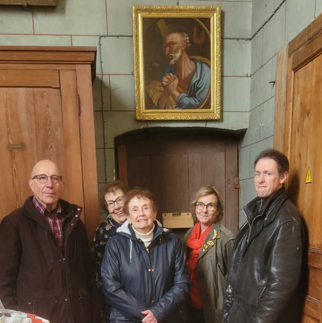 Retour temporaire du tableau dans la sacristie avant d’être placé dans l’église.