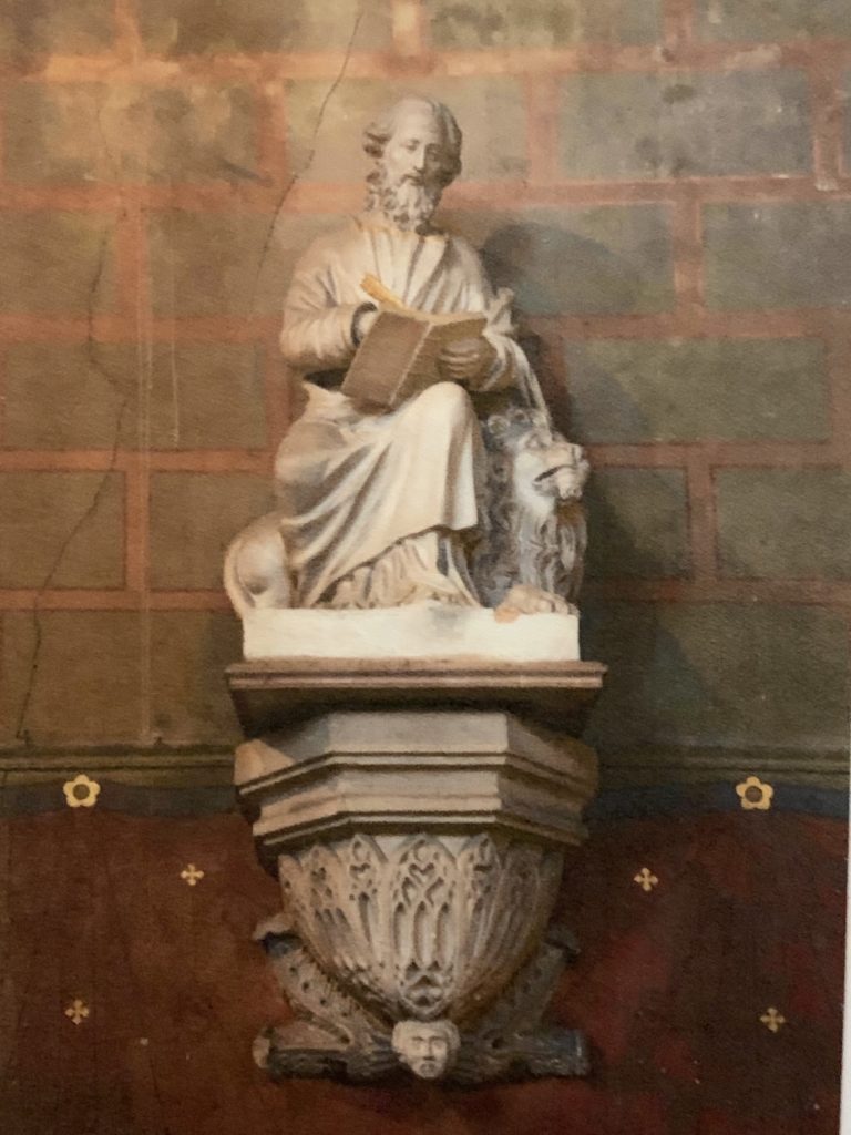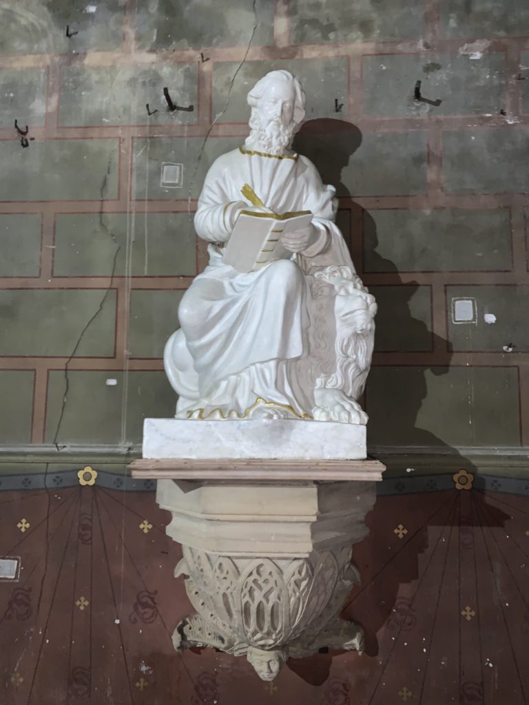 Restauration en cours de la statue de St Marc par Mme Cécile De Oliveira : 1 – 12 Déc 2025